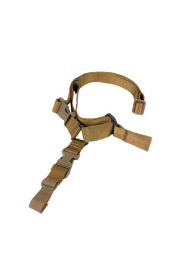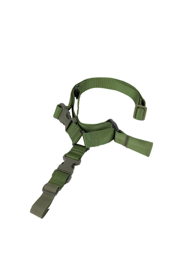 Condor Quick One Point Sling Ambidextrous quick adjusting One Point Sling Transition-loc with pull-tab allows seamless and quick shoulder transition Quick-release buckle to release adapter and sling 1 1/4 inch webbing, with Duraflex buckles (