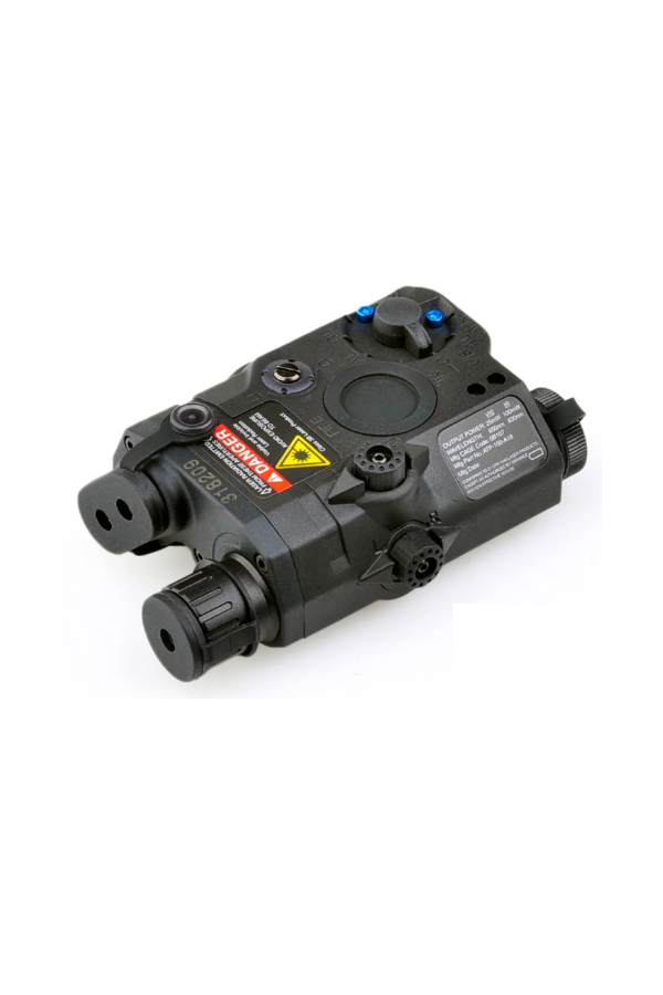 The Element LA-5 PEQ15 Integrated Pointer / Illuminator Module (IPIM) Laser Device runs on a CR123A battery (not included) and is a laser designator as well as an illuminator flashlight.