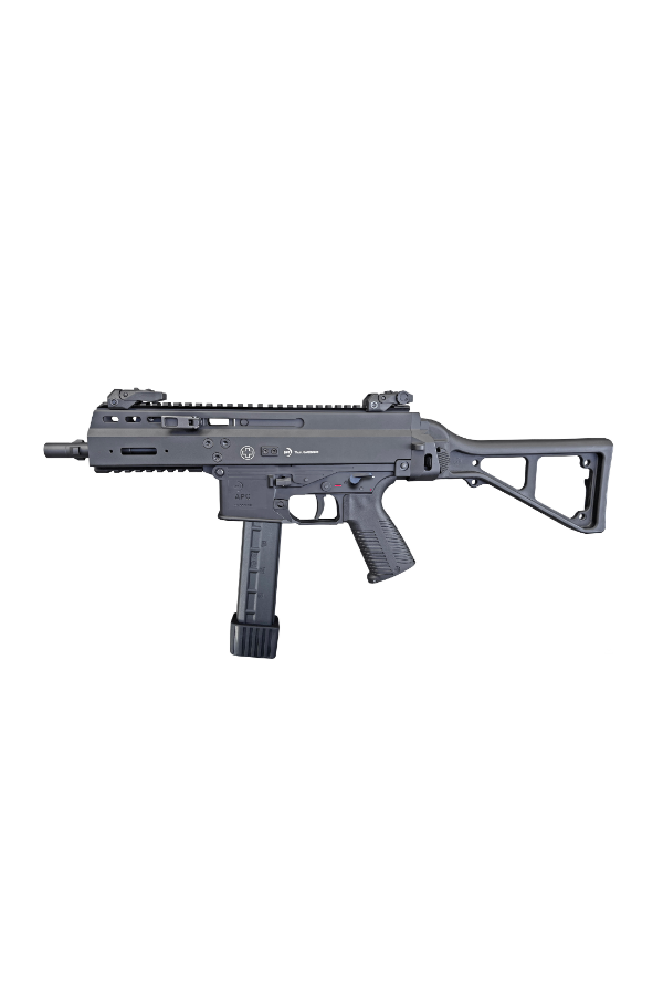 Features Officially licensed B&T APC9 Pro replica Fully engraved markings to match the real thing Precision CNC-machined  aluminum upper receiver, handguard, & bolt. Upper receiver finished in a milspec type III hard anodized finish CNC-machined  steel internals Full length top Picatinny / RIS for mounting lights, lasers, optics, and other...