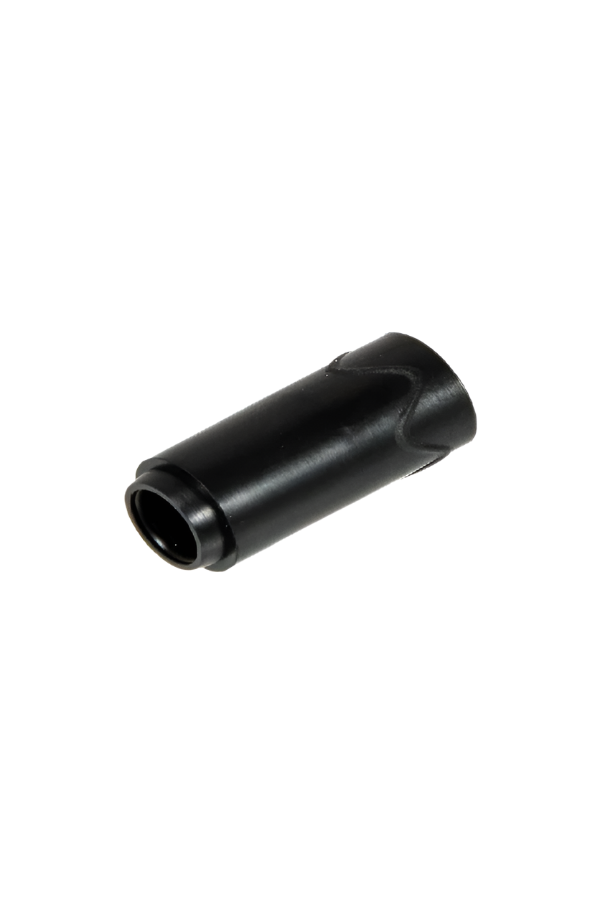 The "Super" hop-up joint produced by Maple Leaf is the direct evolution of the "Autobot" joint. It is designed to offer maximum range, however accuracy over short and medium distances is slightly reduced compared to the "Wonder" seal. It has an internal support revised to perfectly wedge on the edge of the internal barrels which allows it to be centered. Note however that the "Super" seal is compatible ONLY with internal barrels having "an open window". It is also supplied with a steel ring which prevents the seal from being deformed when the nozzle enters.