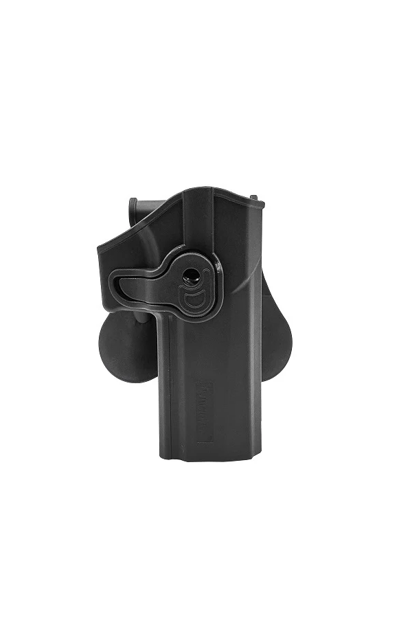 Amomax P320 Holster Full Size M17 - BK Dedicated and specifically engineered for Airsoft series pistols Injection molded nylon-reinforced polymer Locking swivel mechanism allows for angle adjustment Compatible w/ various carry methods such as paddle, belt loop, drop leg, MOLLE (carry attachments not included) Integrated locking button for solid weapon...
